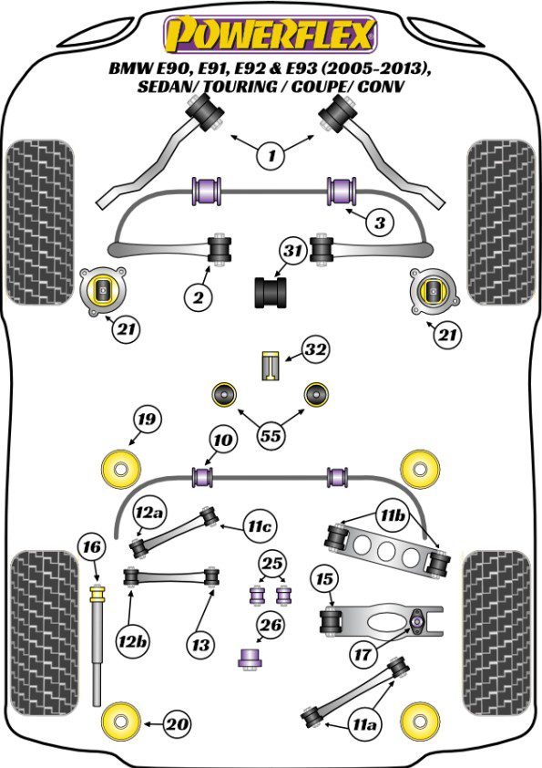 Powerflex Road Series Bushes for BMW 3 Series (E90/E91/E92/E93) All Models excl. M3 2004-2013 read more- Description